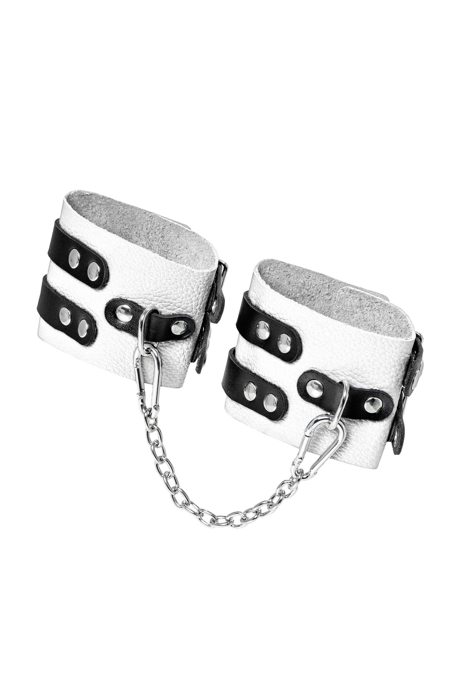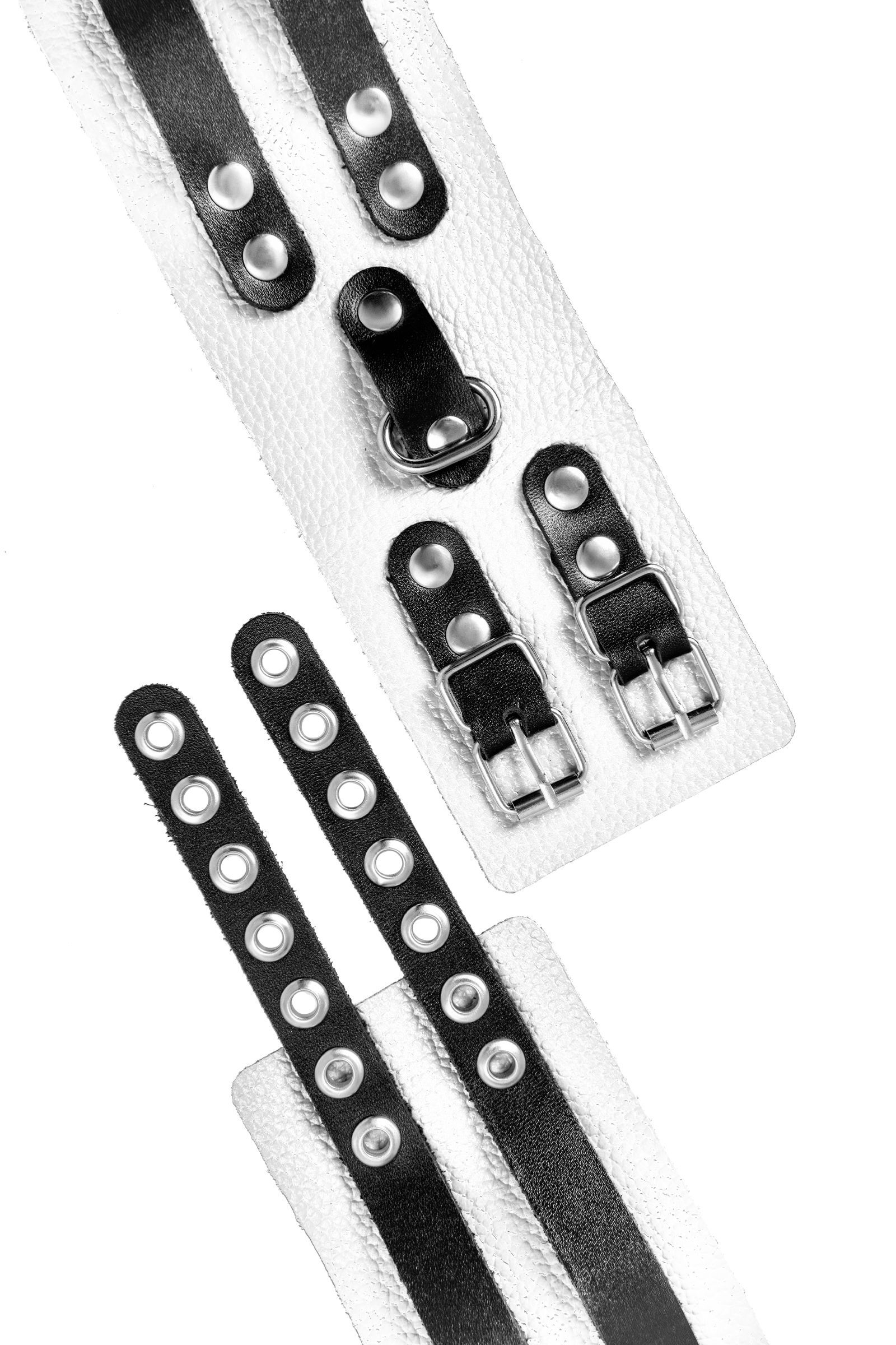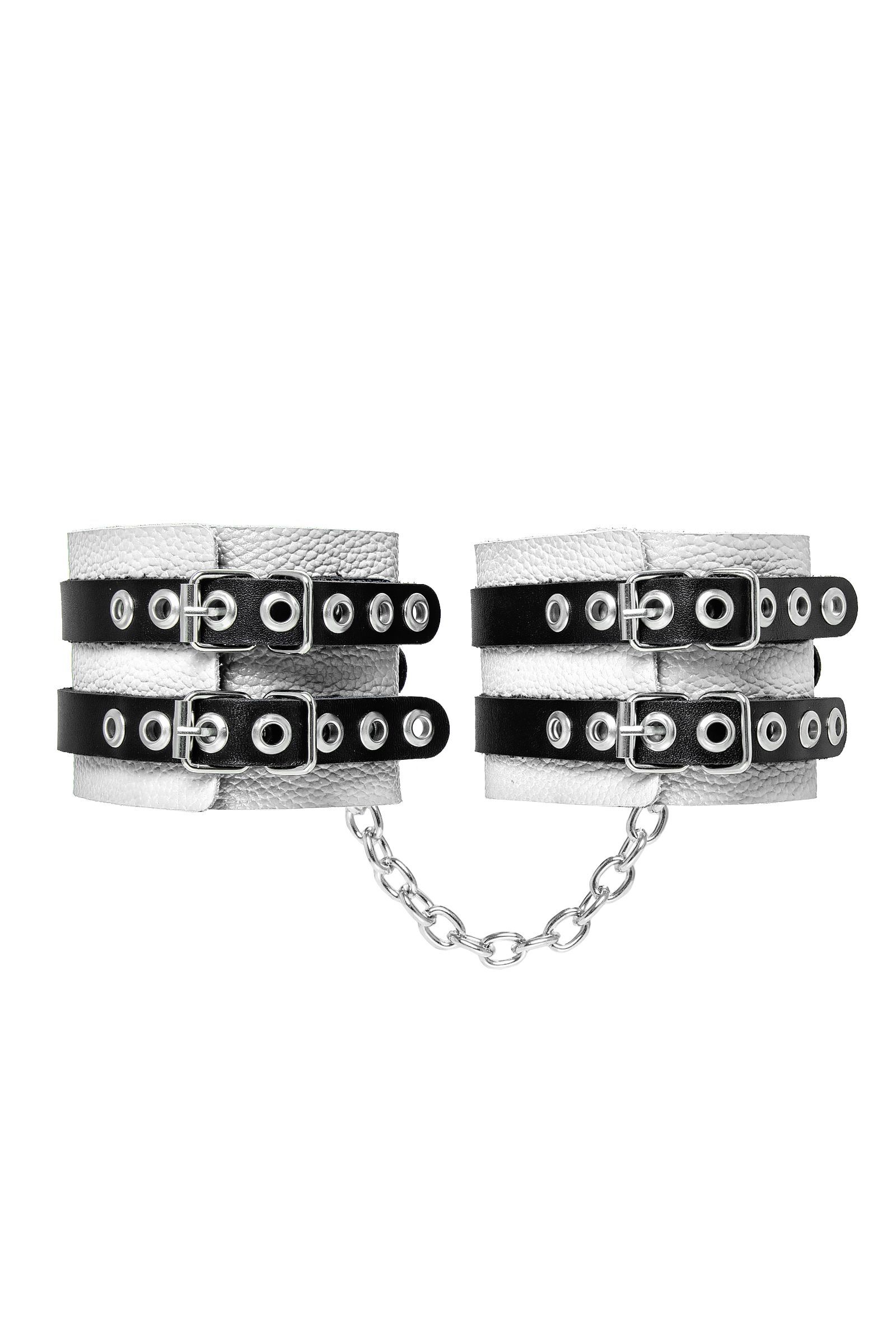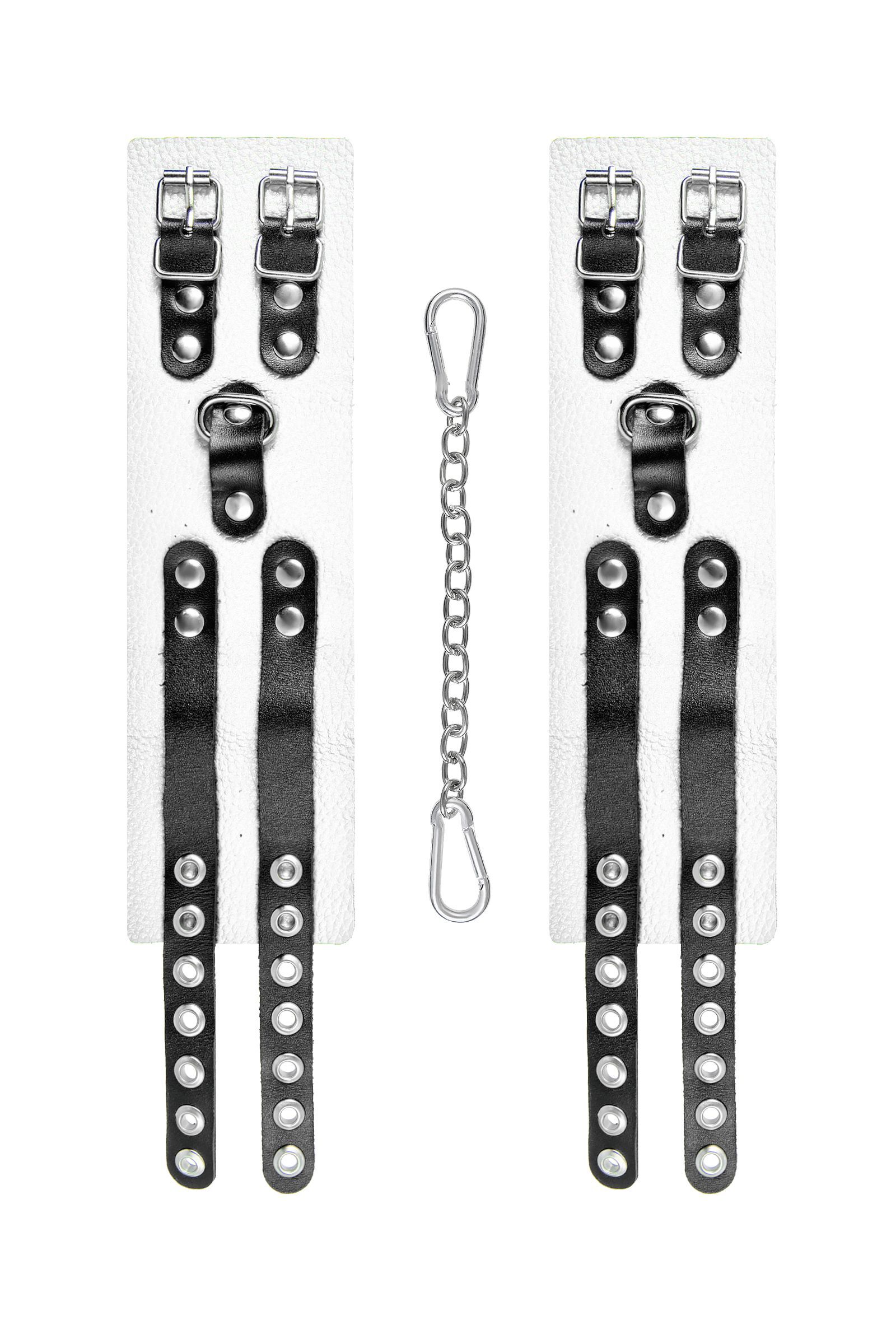 Белая натуральная кожа манжеты нежно облегает ногу, создавая ощущение комфорта ✨. Чёрные жёсткие ремешки с люверсами добавляют дерзости 😈 и легко регулируются под любой обхват. Металлическая фурнитура прочная и надежная, а аромат кожи пробуждает желание 🔥. Съемная стальная цепочка позволяет менять длину оков по вашему желанию.