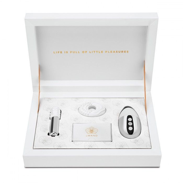 Каждый набор Le Wand Little Pleasures включает: перезаряжаемый вибратор Le Wand Bullet, перезаряжаемый вибратор Le Wand Point, текстурированные силиконовые насадки, брошь с логотипом Le Wand, дорожная сумка из микрозамши, USB-кабель для зарядки. В комплекте: Le Wand Bullet, Le Wand Point, текстурированные силиконовые насадки, брошь, дорожная сумка, USB-кабель для зарядки.