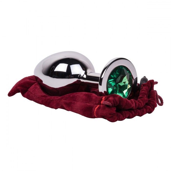 Гладкий большой плаг из отполированной до блеска стали с кристаллом яркого зеленого цвета в основании. Металл - материал с большой теплопроводностью, сначала он будет прохладным, но быстро нагреется до температуры вашего тела. Стальные игрушки можно нагревать или охлаждать с помощью воды.