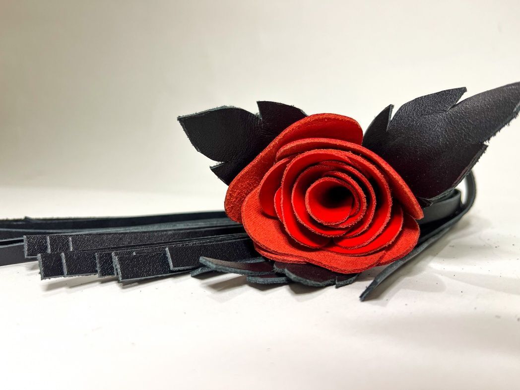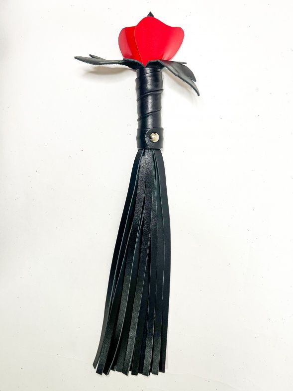 Эта мини-плеть покорит вас своей изящностью и чувственностью. 🖤 Хвост плети, выполненный из мягкой натуральной кожи, невероятно приятен на ощупь. 💆♀️ Красная лаковая роза в рукоятке – символ страсти и роскоши - станет прекрасным дополнением к вашему интимному опыту. 🌸