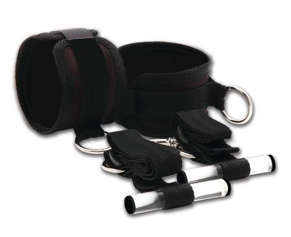 Черные наручники из мягкого поролона, размер регулируется на липучках. Манжеты можно использовать отдельно или вместе со стропами, которые можно закрепить на двери.