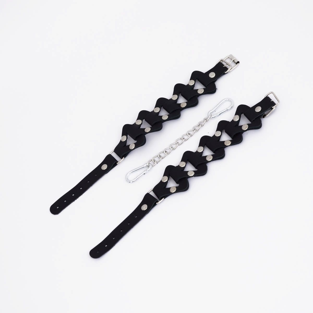 Изделие выполнено из мягких кожаных ремешков , которые комфортно облегают запястья, обеспечивая удобство даже при длительном использовании. Треугольная цепь плетения добавляет изделию элегантности и эротичности, подчеркивая красоту рук. Минималистичный дизайн позволяет использовать их не только для фиксации рук в любовных играх, но и как стильный аксессуар, который украсит ваш повседневный или вечерний образ.