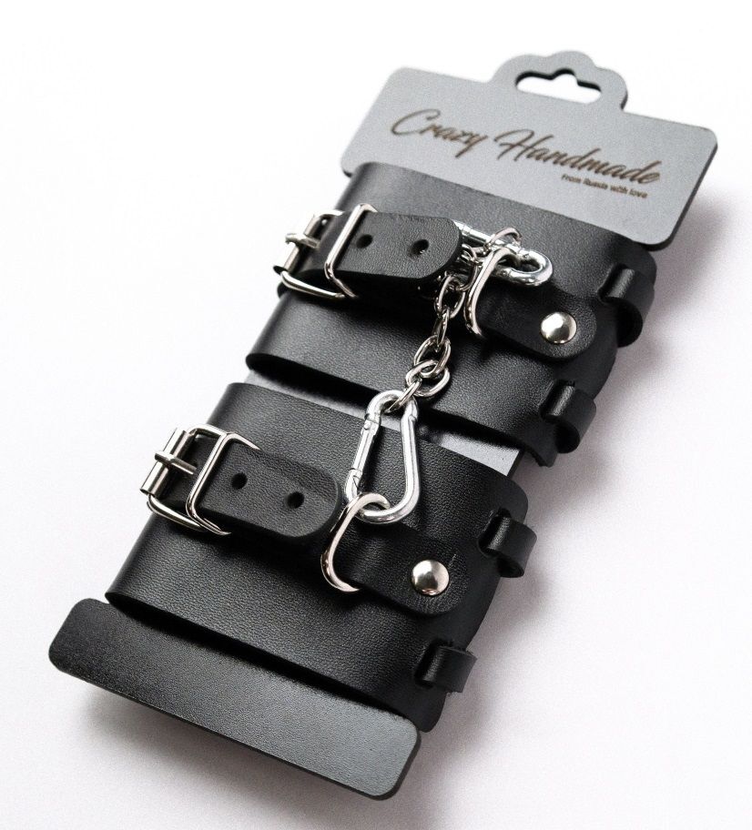 Черные кожаные наручники с ремешками.