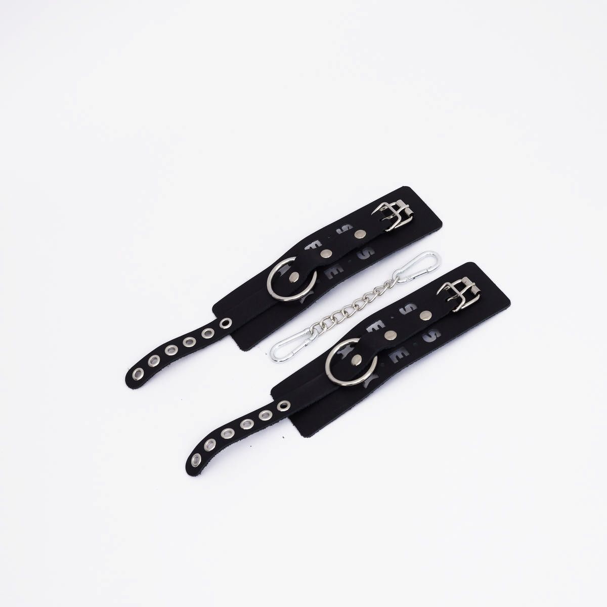 Каждая деталь продумана для максимального наслаждения. Изготовленные из мягкой натуральной кожи 🐮 они облегают запястья словно вторая кожа, создавая ощущение комфорта и соблазна. Стальное хромированное кольцо ⚙️ придает им прочность и элегантность, а резная надпись "SEX" 🔥 добавляет дерзкого шарма. Регулируемый ремешок обеспечивает идельную посадку, а надежные карабины гарантируют безопасность.