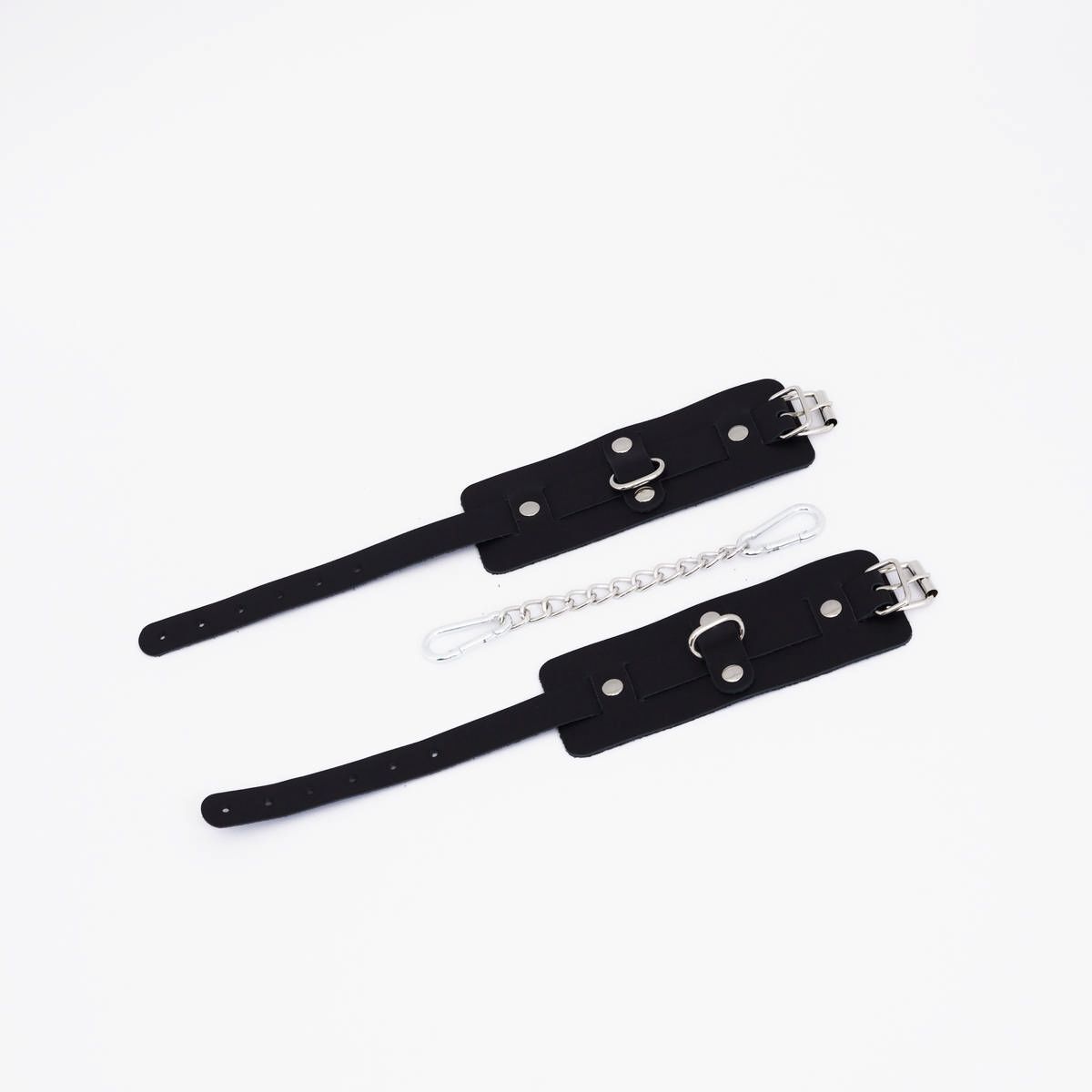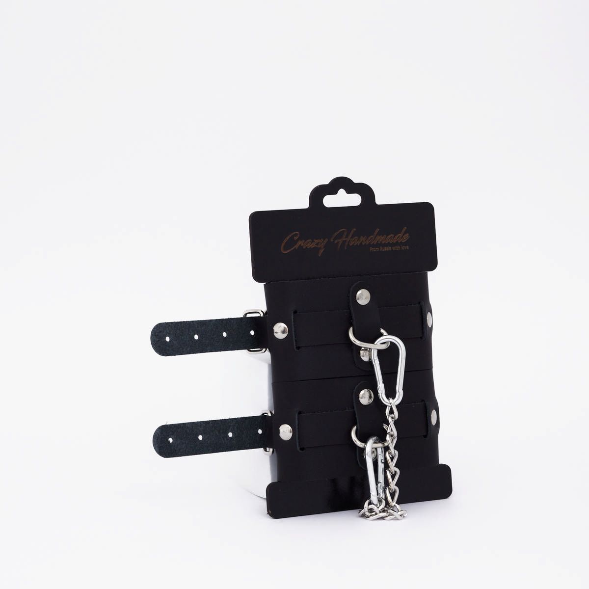 Они созданы для тех, кто ценит качество и индивидуальность. 🖤 Изделие из supple black leather с металлическими элементами смотрится роскошно и при этом удобно. Регулируемый ремешок ⛓️ обеспечит идеальную посадку на запястье, а прочная соединительная цепочка с карабинами даст уверенность в надежности.