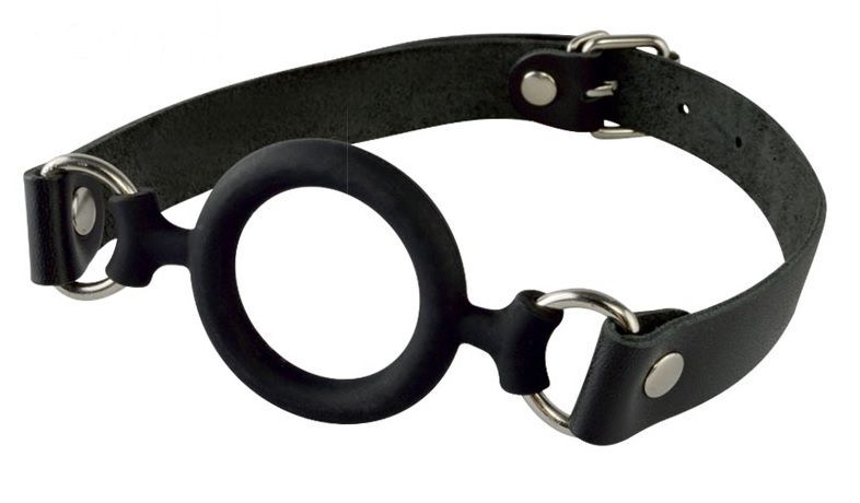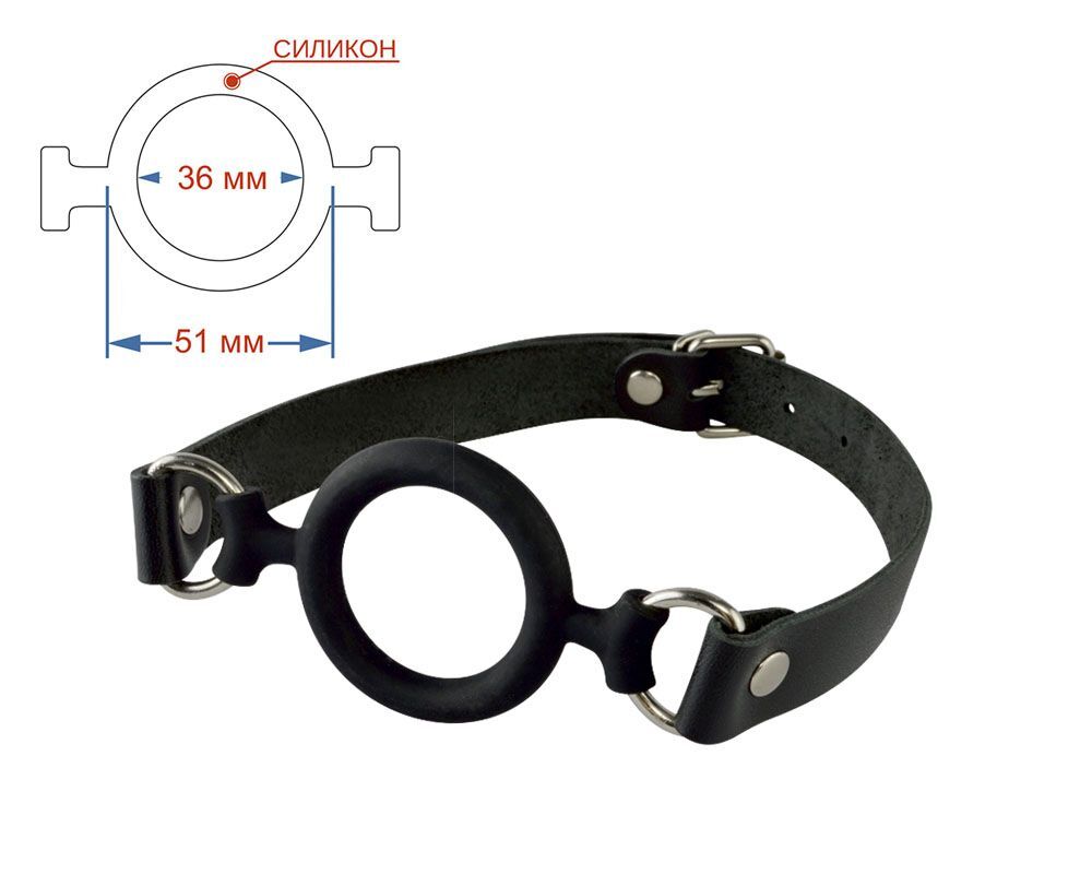 Силиконовый кляп-рамка диаметром, прикреплен к ремешкам из натуральной кожи. Регулируется кляп при помощи металлической пряжки. Металлическая фурнитура имеет никелевое покрытие. Внутренний диаметр - 3,6 см.