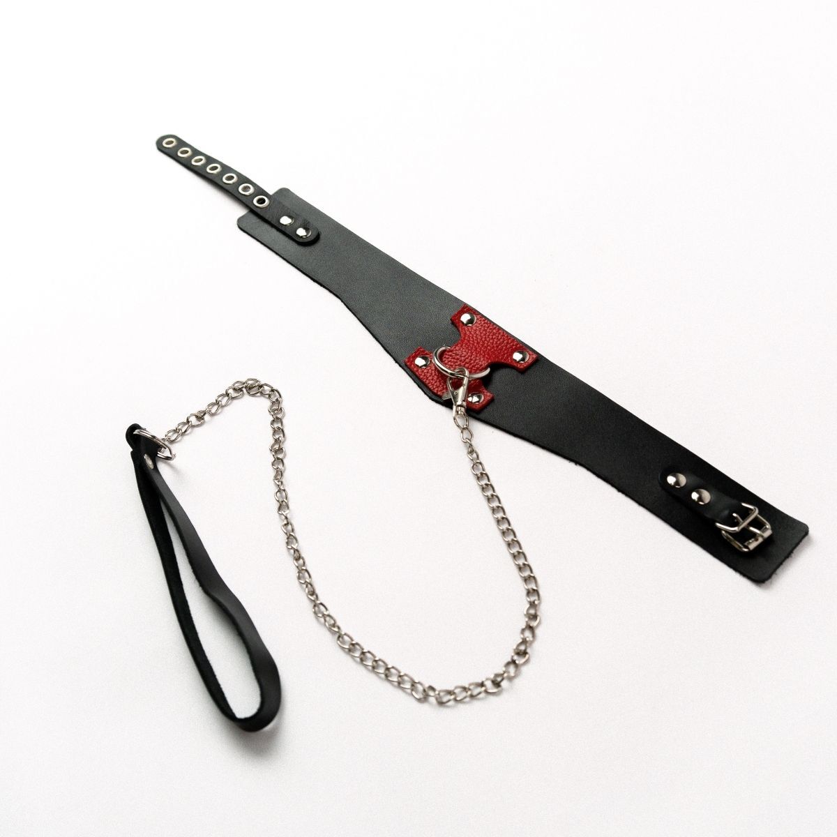 Широкий ошейник имеет декоративную вставку с кольцом для крепления металлического поводка с удобной ручкой. Ширина ошейника - 4 см.