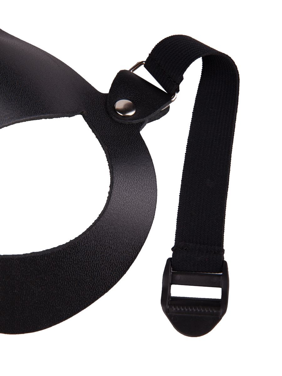 Сексуальная и изящная маска изготовлена из высококачественной натуральной ременной кожи, это придаёт изделию каркасный роскошный вид. Маска легко одевается и имеет универсальный размер за счёт ремешка-резинки, который надёжно и комфортно фиксирует аксессуар на голове. Большой кокетливый разрез под глаза сделает Ваш взгляд томным и страстным, излучающим безграничную сексуальную энергию. Металлические декоративные элементы в сочетании с натуральной чёрной кожей придаёт изделию фетишности.