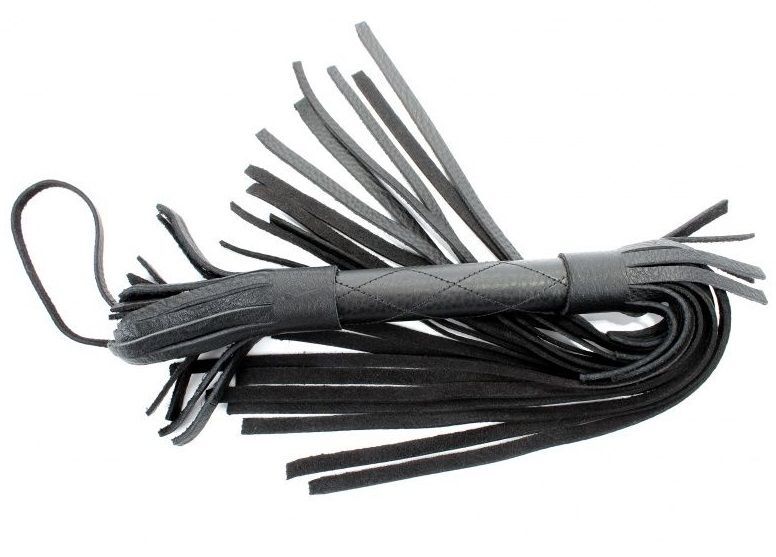 Аккуратная черная плетка, изготовленная из натуральной кожи. Имеет жесткую ручку, также покрытую кожей. Имеется петля для удобного использования плети. Длина рукояти - 17 см.
