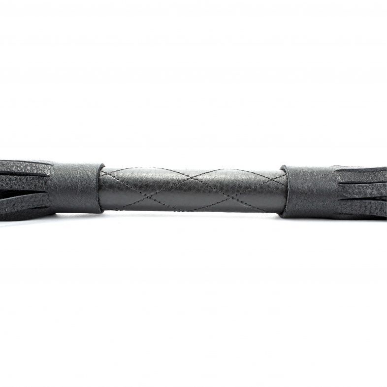 Чёрная кожа, мягкая на ощупь, переходит в прочную текстуру хлыстов. Длинные, гибкие и послушные, они прекрасно поддаются управлению 🤝 благодаря удобной ручке из натуральной кожи с продуманным дизайном. Петля на конце ручки обеспечивает надежную фиксацию и комфорт во время использования.