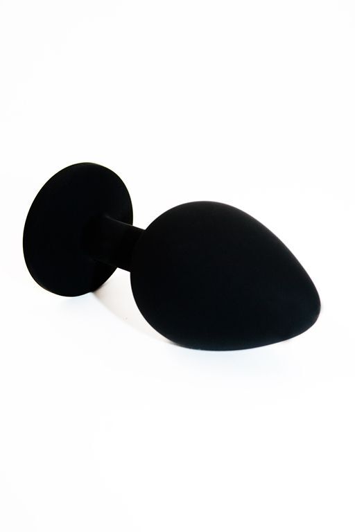 Анальная пробка из силикона черного цвета, размер M. Страз в основании круглой формы, выполнен из стекла темно-зеленого цвета. Упакована в вельветовый мешочек для хранения. Вес - 46,5 граммов.