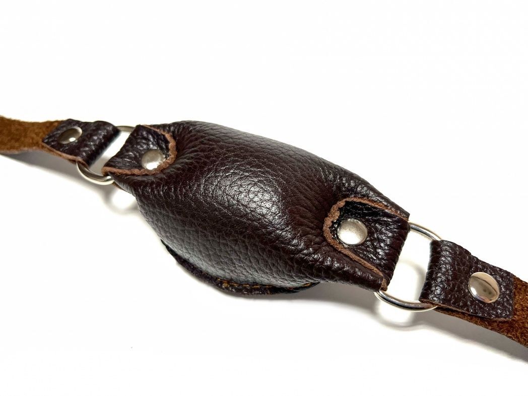 Натуральная кожа мягкого коричневого оттенка обволакивает кожу нежной гладкой поверхностью. Наполнитель средней плотности обеспечивает комфорт во время использования. Металлическая фурнитура с точными сварными швами подчеркивает элегантность аксессуара 💅. Регулируемый ремешок позволяет подобрать оптимальное натяжение ⛓️.