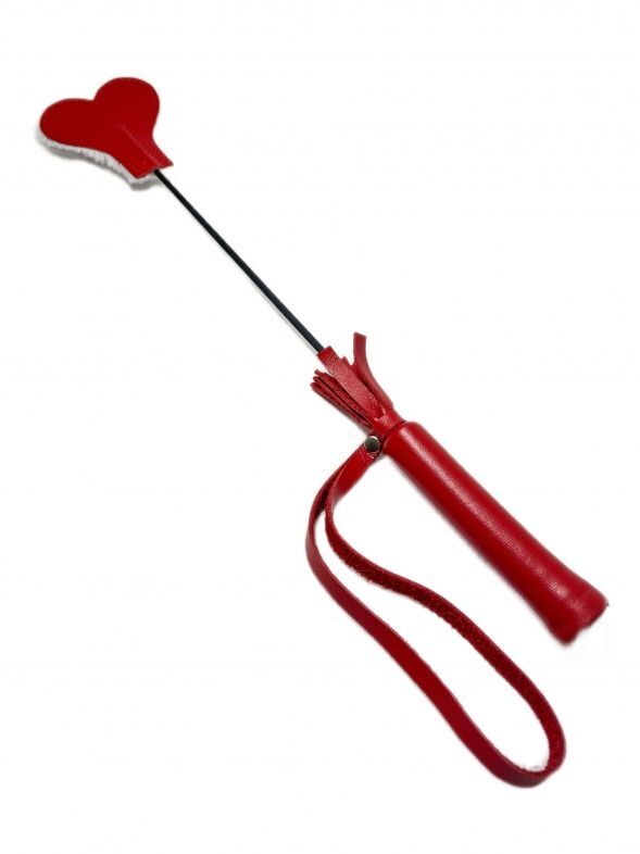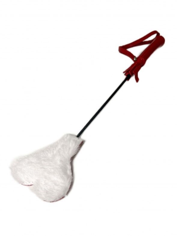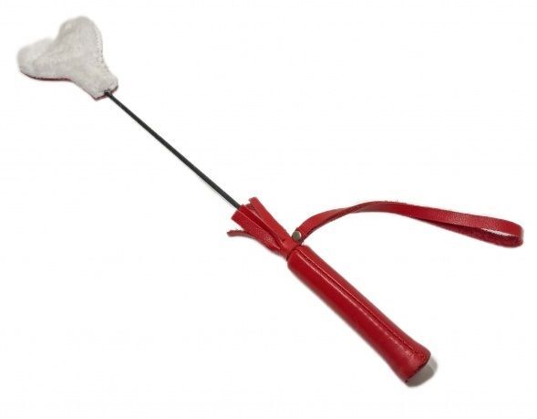 Миниатюрный и очень симпатичный стек из натуральной красной кожи, на конце которого расположен шлепок в виде сердечка. Одна сторона шлепка выполнена из натуральной кожи, а другая из нежнейшего белого эко-меха, невероятно приятного на ощупь. Такой дизайн позволит чередовать возбуждающие шлепки кожаной стороной и нежные поглаживания меховой стороной. Для удобства на рукоятке имеется петелька. Этот маленький, но гибкий и яркий стек добавит незабываемых эмоций и ощущений в любовную игру! Длина рукояти - 9 см.