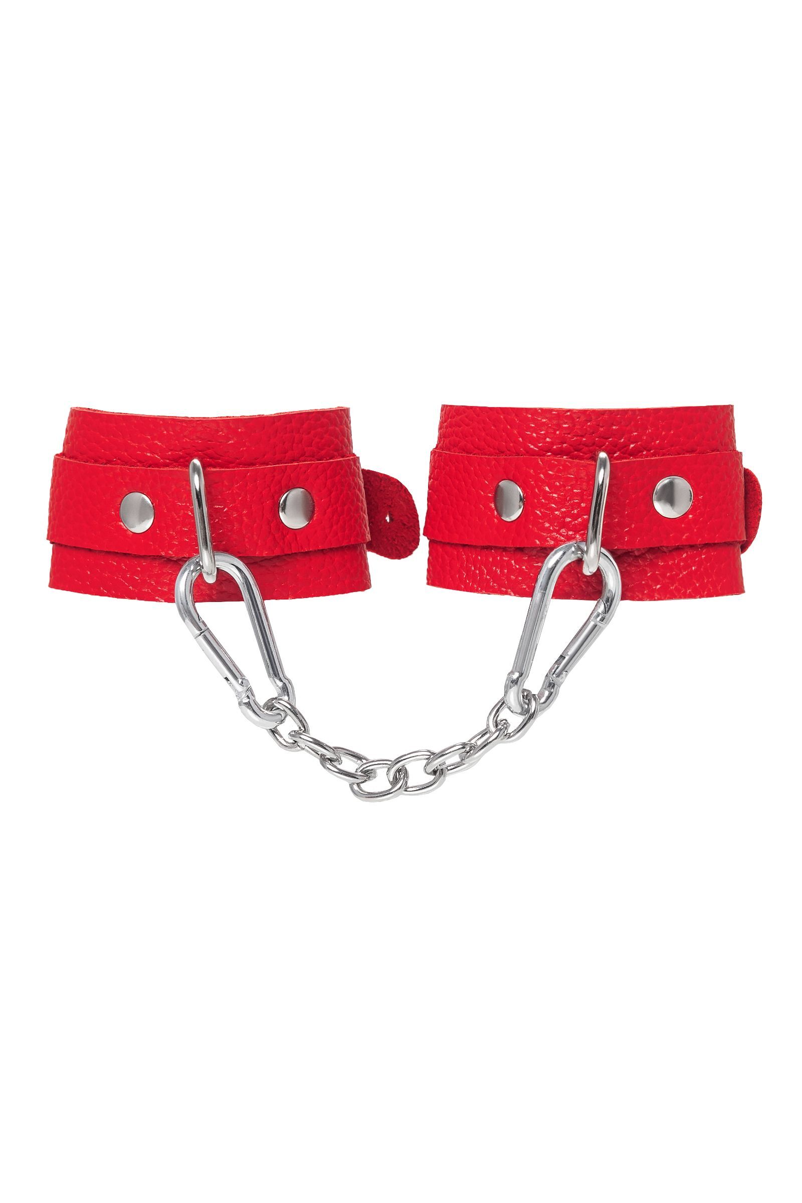 Изготовленные вручную из мягкой красной кожи 💋, эти браслеты скруглены для комфортного прикосновения к нежной коже. 💎 Качественная фурнитура и короткая стальная цепочка с карабинами позволяют надевать и снимать их легко, а натуральный аромат кожи добавляет пикантности 🥰.