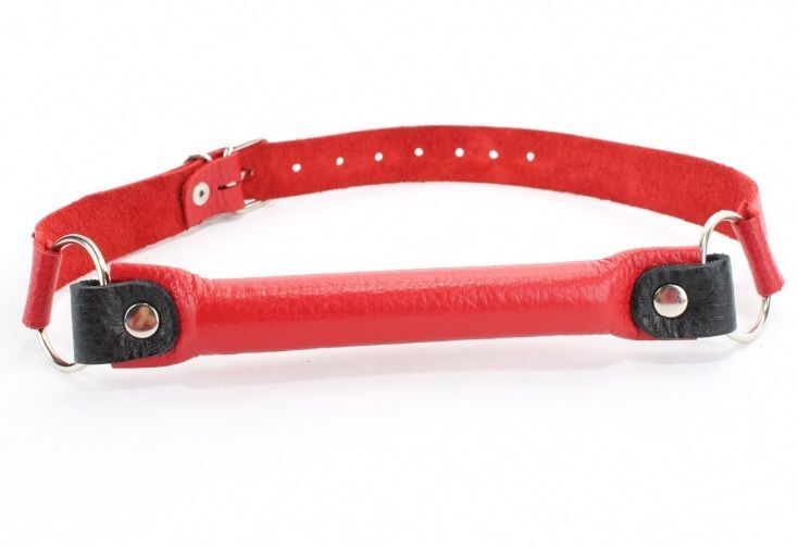 Кляп красного цвета из дерева, обтянутого натуральной кожей, декорирован двумя металлическими кольцами по бокам. Пряжка сзади позволяет подобрать нужный размер, обеспечивает надежную фиксацию и комфорт. Подойдет на обхват от 45 до 60 см. Пикантный аксессуар, который разнообразит Вашу БДСМ игру! Длина трензеля - 15 см., диаметр - 2 см.