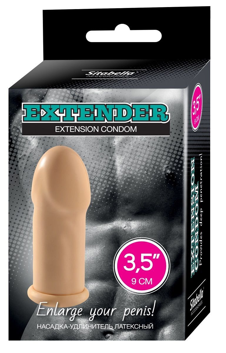 Насадка-удлинитель латексный предназначен для восполнения достижения гармонии партнерами в интимных отношениях и увеличения яркости сексуальных впечатлений. Прирост длины - 9 см. Диаметр внутреннего кольца 2,2 см и внешний 3,8 см , удлинение сантиметров на 7 примерно