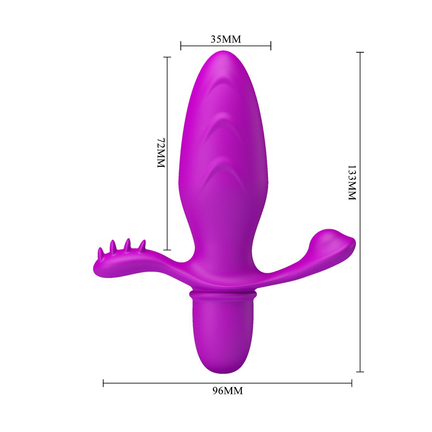 Стимулятор работает в разных режимах мощной вибрации (10 на выбор), которые возбуждают чувствительные анальные стенки, а 2 отростка по бокам усиливают ощущения и удваивают удовольствие, препятствуя чрезмерно глубокому проникновению. Рабочая длина - 7,2 см.