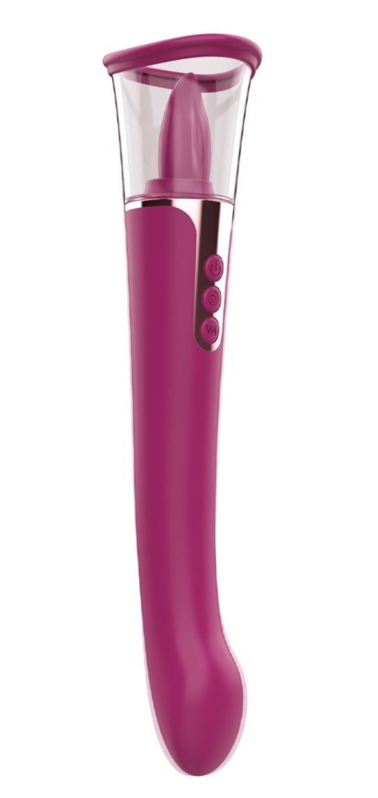 Двусторонний вибратор и вакуумная помпа, которые можно использовать не только для стимуляции клитора, но и сосков, и зоны G. Одна из сторон модели представляет собой классический вибратор с изогнутой головкой и глубокой вибрацией, удобной для стимуляции точки G. Если игрушку развернуть, ствол становится рукояткой, а вторая сторона – вакуумным стимулятором, который будет реалистично имитировать оральные ласки с эффектом посасывания. Воронка позволяет создать область пониженного давления, вызывающего прилив крови к эрогенной зоне. У игрушки 9 режимов вибрации, 3 режима вакуума, 9 режимов движения язычка, которые создадут широкий спектр ощущений. Одна игрушка подарит сразу несколько видов стимуляции. Диаметр чаши - 5,4 см.