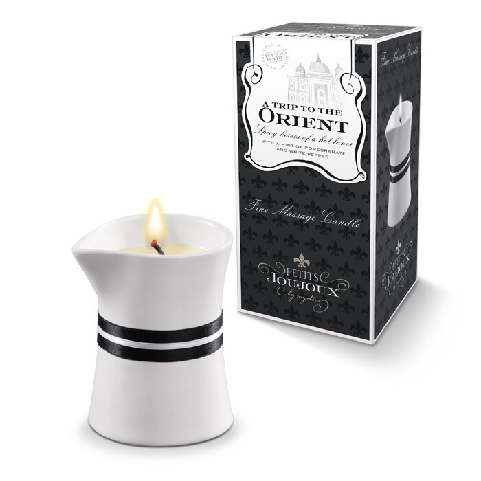 Чтобы создать романтическую атмосферу и порадовать любимого человека массажем, нужны лишь желание и свеча Petits Joujoux, рассчитанная на 30 часов горения. Она наполняет спальню призрачным светом, радует возбуждающим ароматом граната и белого перца, а также служит массажным маслом.