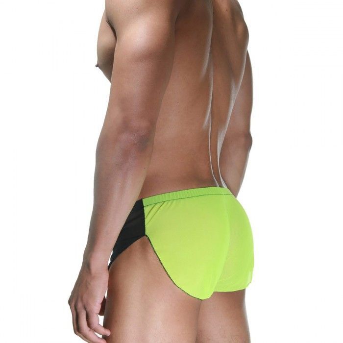 Мужские шорты-боксеры со свободной посадкой, из комбинированной черной и ярко-зеленой легкой полупрозрачной ткани.
