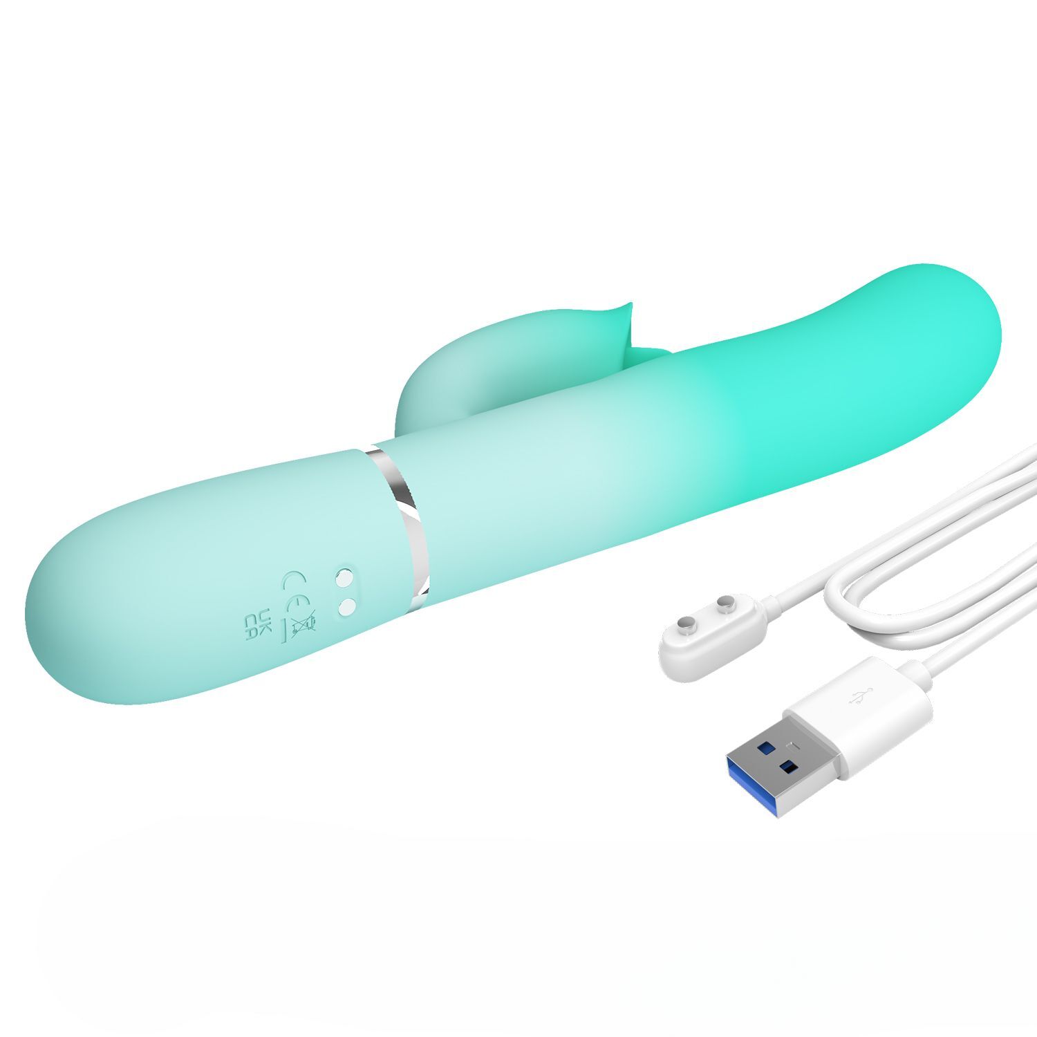 Силиконовый вибратор с 7 режимами поступательных движений и лизания. Стимулирует две зоны сразу. Кнопка для взрывного оргазма. Заряжается через магнитный USB. Рабочая длина - 12,5 см.