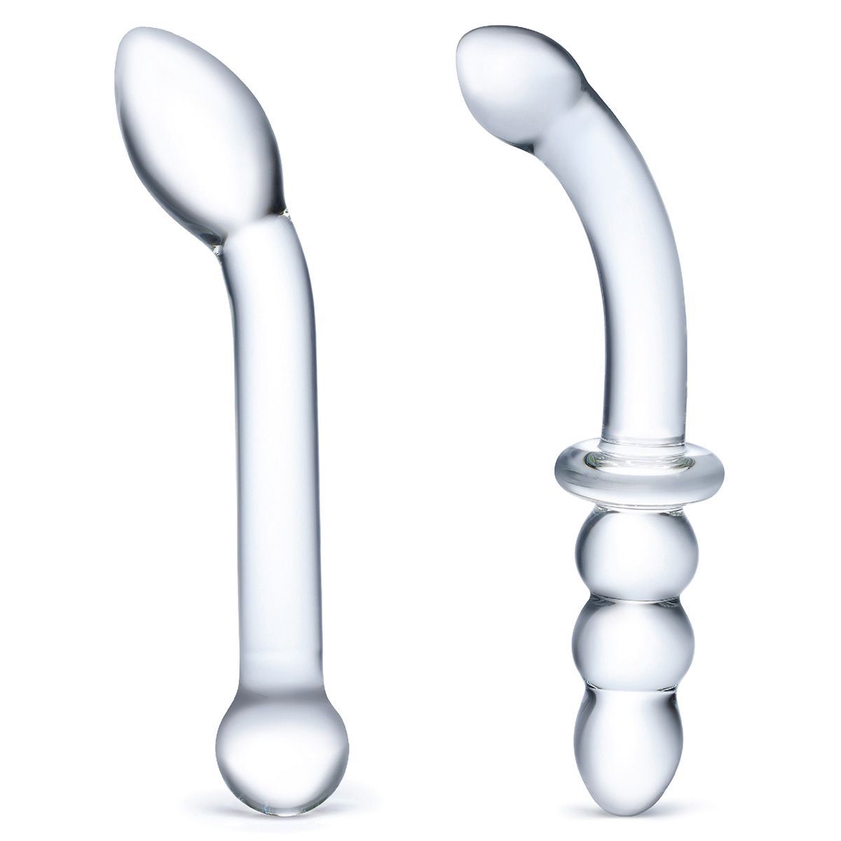 Получите максимум удовольствия от исследования точки G и своей чувственности с двумя гладкими стеклянными фаллоимитаторами, изогнутыми для целенаправленной стимуляции. Этот набор включает классический фаллоимитатор - стимулятор точки G, с выпуклым коническим наконечником для плавного введения, и двусторонний фаллоимитатор с ребристым концом, который отлично подходит для анальной стимуляции. Ограничитель в середине игрушки поможет контролировать глубину. Рабочая длина гладкого стимулятора - 17,1 см., диаметр - 3,4 см.
