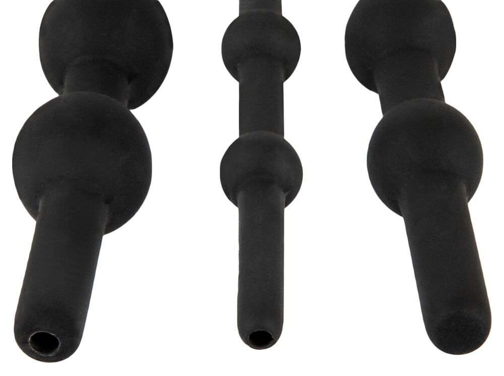 Набор для стимуляции пениса с 3 различными расширителями. Все три изготовлены из бархатистого мягкого силикона, и каждый из них имеет стимулирующие бусины разного диаметра. Каждый расширитель имеет закругленный кончик и кольцо для легкого ввода и извлечения. Они также гибкие и податливые для нежного, комфортного использования. Длина малого стимулятора - 15,8 см, рабочая длина - 11 см, диаметр - 0,7 см.