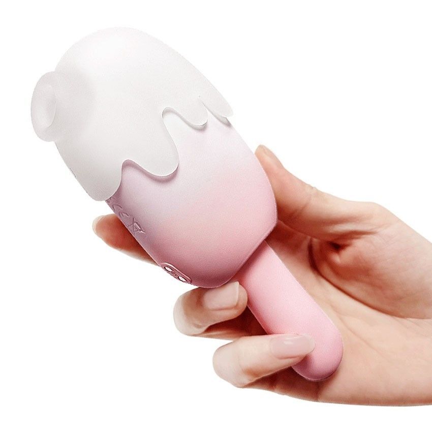 Вибромассажёр в виде аппетитного мороженного придётся по вкусу любителям оригинальных секс-гаджетов. Её «вкусный» дизайн в сочетании с разнообразными режимами вибрации, пульсации и всасывания подарят как эстетическое, так и эротическое удовольствие.