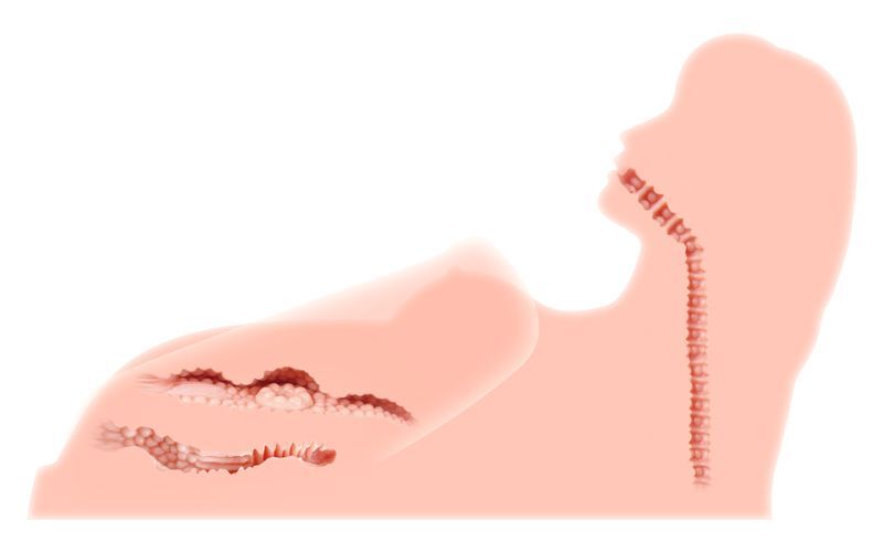 Внутренний рельеф и изгибы трёх любовных тоннелей полностью повторяют особенности строения женской вагины, ануса и ротика.