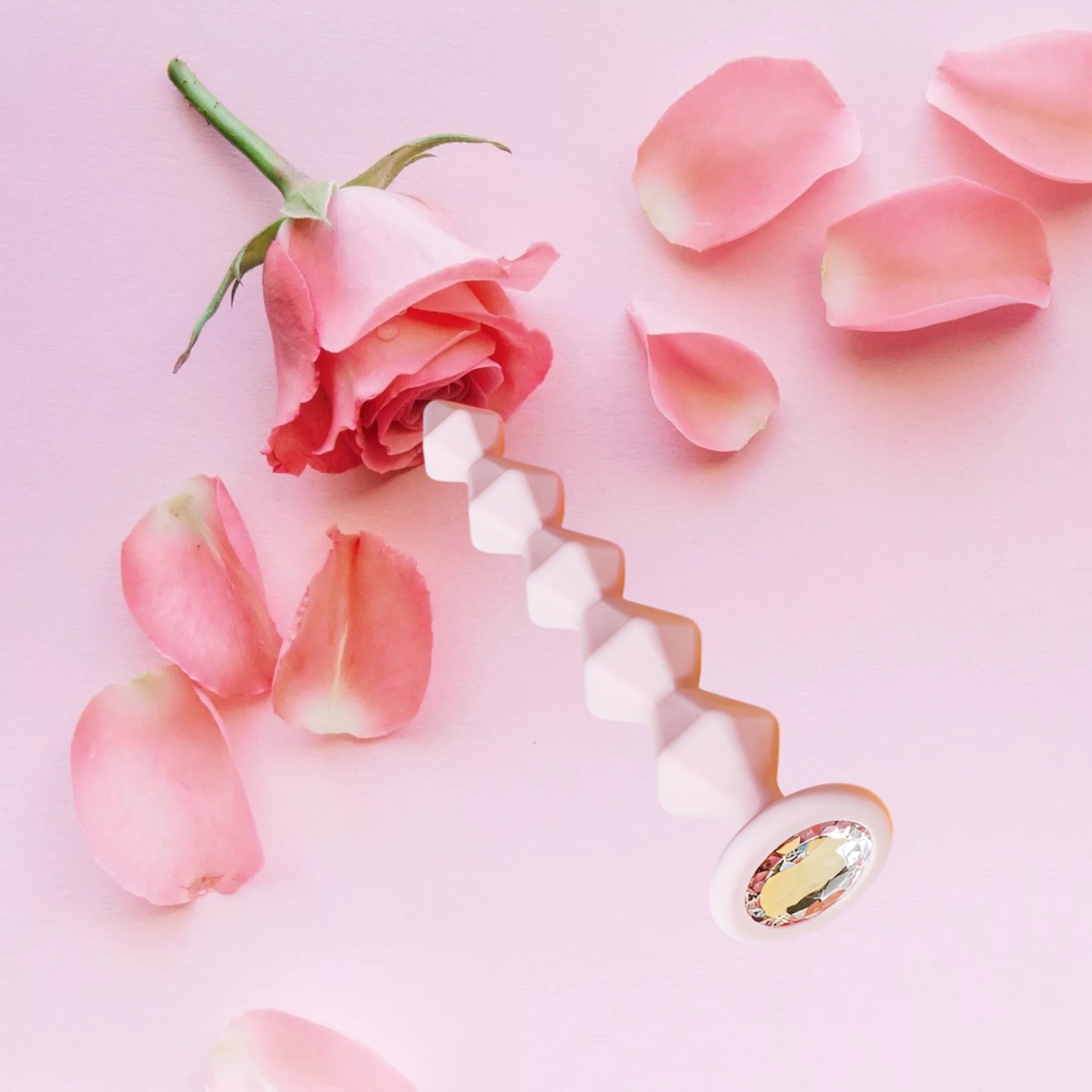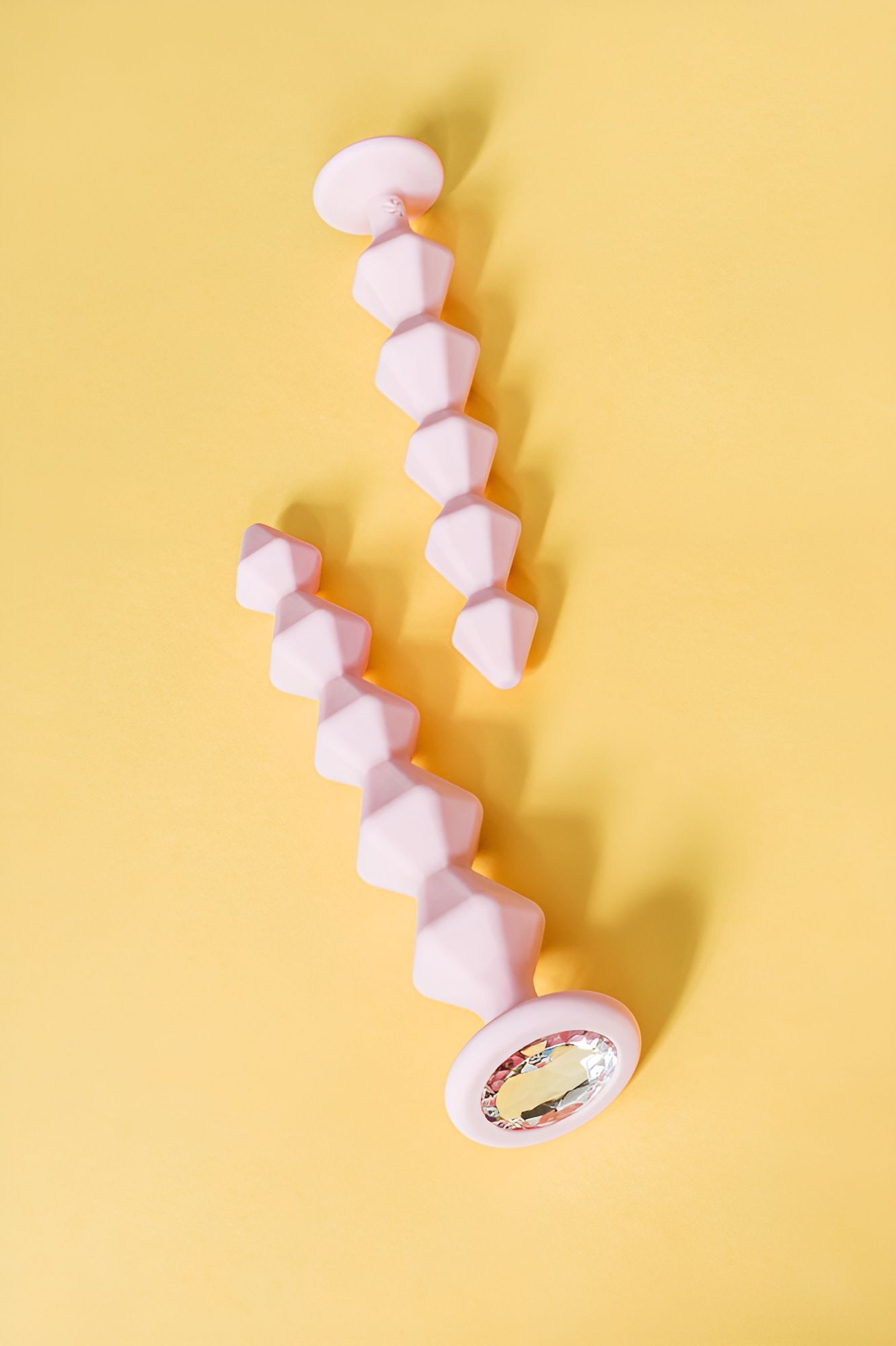 5 сверкающих звеньев из медицинского силикона соединены в мягкую и гибкую цепочку. Каждое звено, словно бриллиант, украшено рельефными гранями, чтобы подарить незабываемые ощущения. Узкая форма с заостренным кончиком обеспечивает плавное проникновение 💎. Основание с прозрачным стразом добавляет изысканности и подчеркивает ее сексуальность 💖.