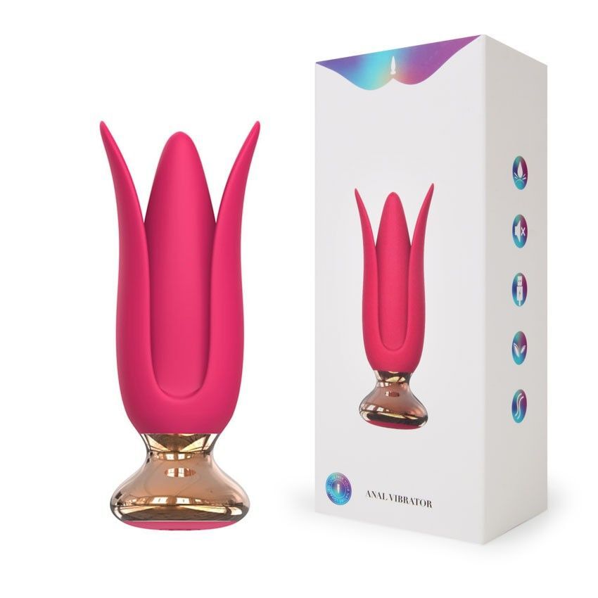 Розовая анальная вибровтулка с лепестками. 10 режимов вибрации. Рабочая длина - 9,5 см.