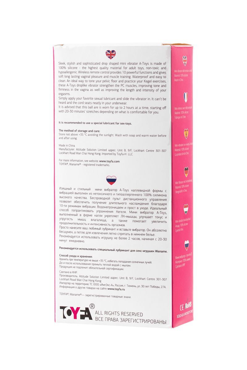 Каплевидная форма, словно розовая мечта, идеально повторяет линии тела. Гипоаллергенный силикон высокого качества приятно мягкий на ощупь 🥰. Десять режимов вибрации, управляемых беспроводным пультом, помогут подобрать идеальный ритм для наслаждения ✨.