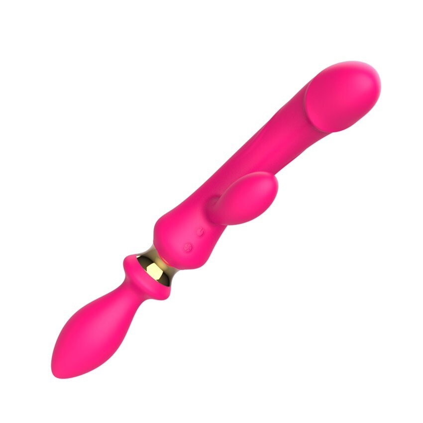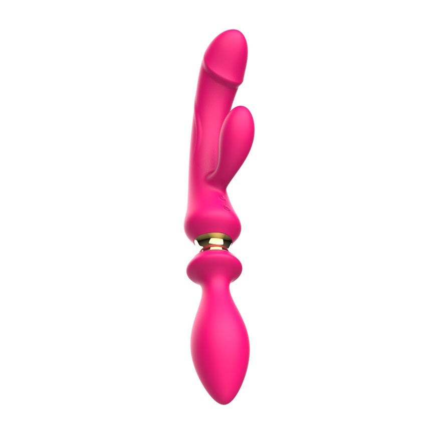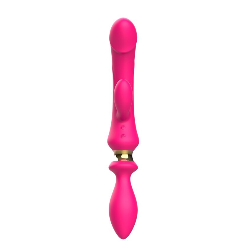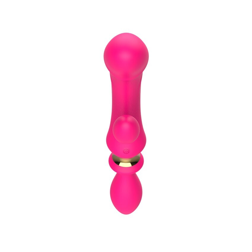 Оригинальный гаджет для разнообразных эротических удовольствий. Одна сторона секс-игрушки представляет собой вибратор с специальным отростком для стимуляции клитора, другая – анальную втулку. В арсенале интимного аксессуара разнообразные режимы вибрации и вакуума. 10 режимов вибрации, 10 режимов вакуума. Вибрация ощущается в стволе и втулке. Может включаться вместе и по отдельности. Режим вакуума работает в специальном отростке. При включении имитирует посасывание. Вибрация в стволе и вакуум в отростке работают только одновременно. Ствол гаджета хорошо гнётся в разные стороны. Специальный отросток и втулка гнутся в разные стороны только у основания. Рабочая длина вагинальной части - 12,4 см, диаметр - 3,4 см.