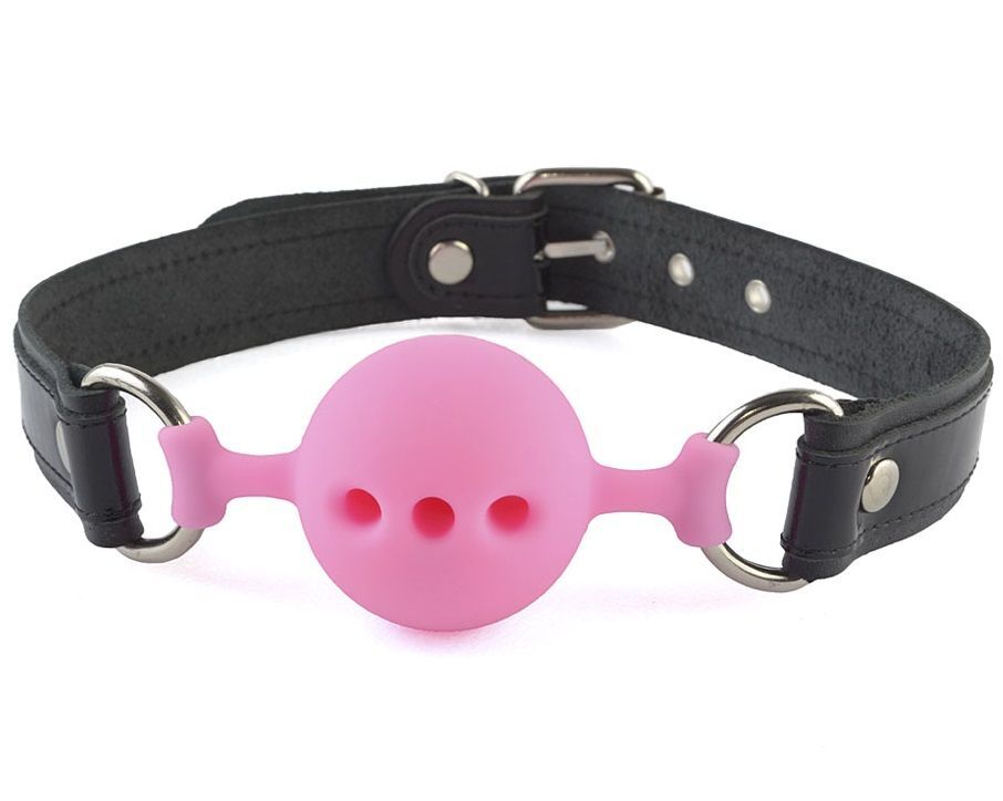 Кляп-шар из силикона окутает вас мягкой и приятной текстурой 💖. Розовый оттенок придает ему игривость, а черные кожаные ремешки добавляют нотку страсти 🔥. Специально разработанные отверстия обеспечивают комфортную вентиляцию, не давая коже ощущать дискомфорт 💨.