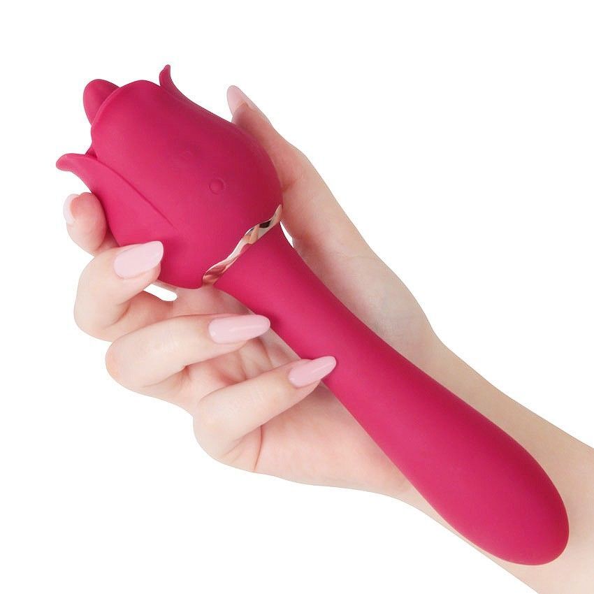 Интимный аксессуар в виде прекрасной розы займёт достойное место в любой коллекции секс-игрушек. Игривый язычок внутри бутона двигается и вибрирует в разных режимах, нежно лаская сосочки, клитор и другие эрогенные зоны. Стебель «цветка» используется как вибромассажёр, даря восхитительные оргазмы. Переключение виброрежимов усиливает возбуждение. 9 режимов вибрации, 9 режимов работы язычка. Стебель гнётся в стороны и фиксируется в нужном положении, позволяя комфортно использовать гаджет.