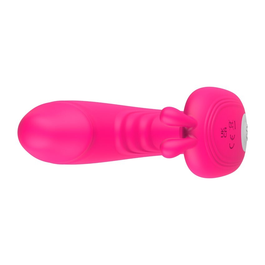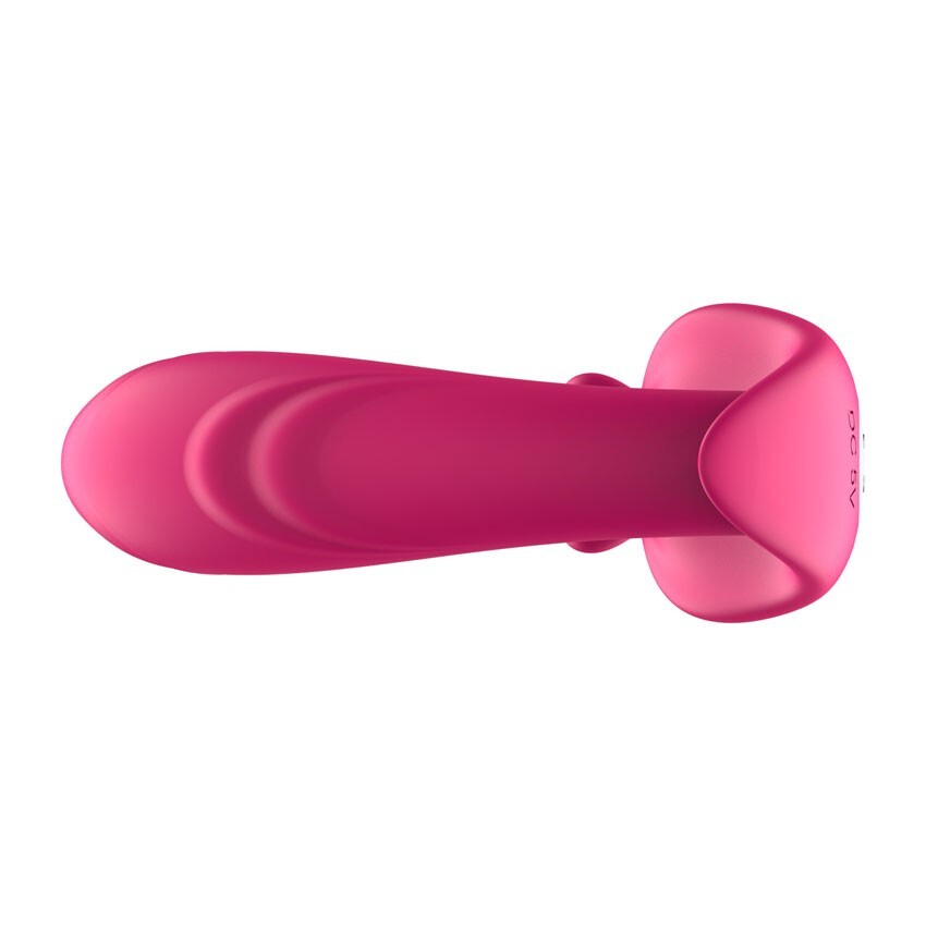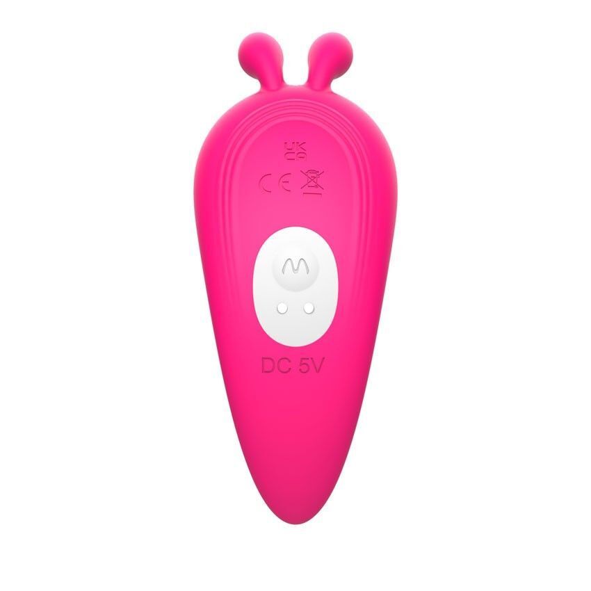 Розовый вибромассажёр с пультом дистанционного управления. 10 режимов вибрации. Рабочая длина - 11,8 см.