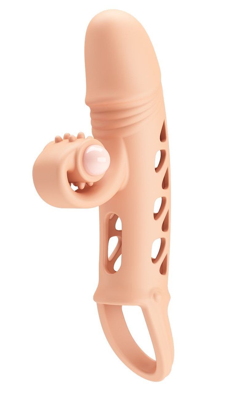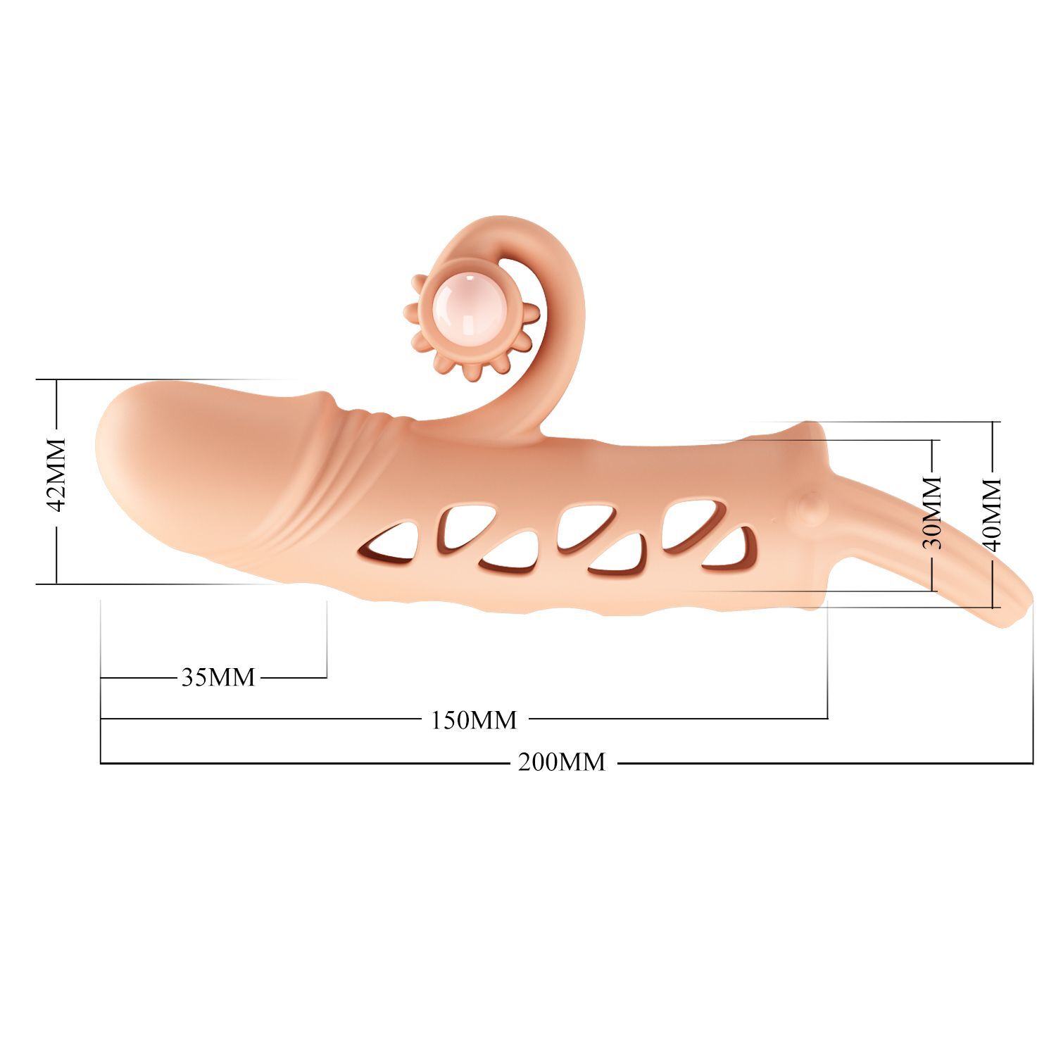 Вибронасадка на пенис – это отличное и безопасное средство увеличить половой член, продлив при этом секс и подарив партнерше новые эмоции. Она изготовлена из ТПЕ и фиксируется на месте с помощью петельки. Длина без подхвата - 15 см.