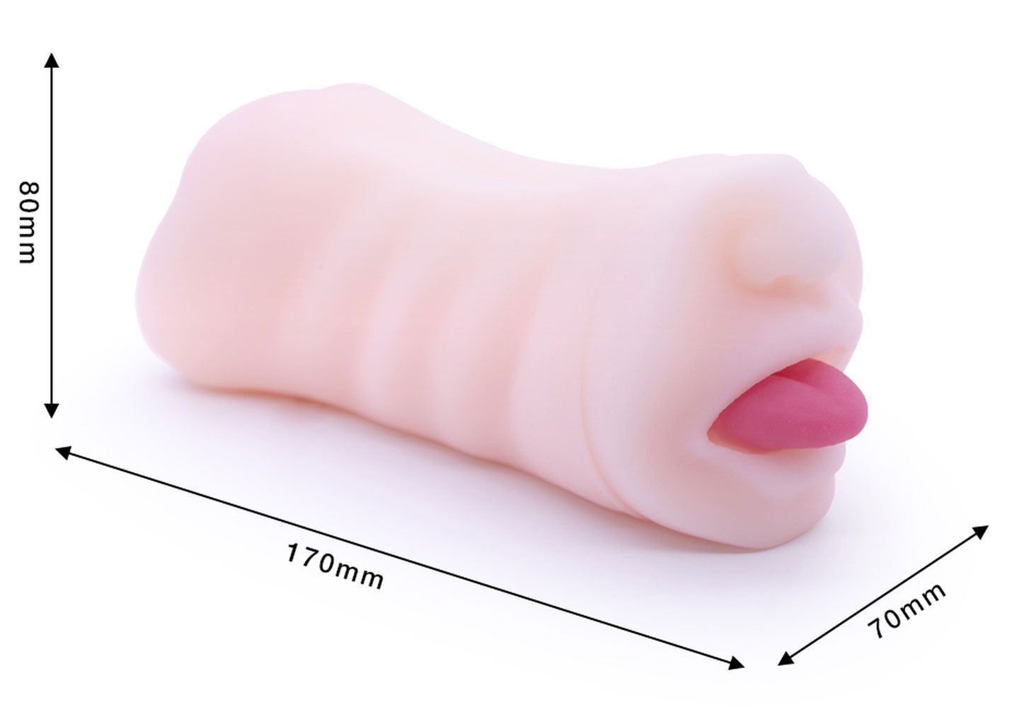 Телесный двусторонний мастурбатор - вагина и ротик с язычком. Очень эластичный и приятный на ощупь.