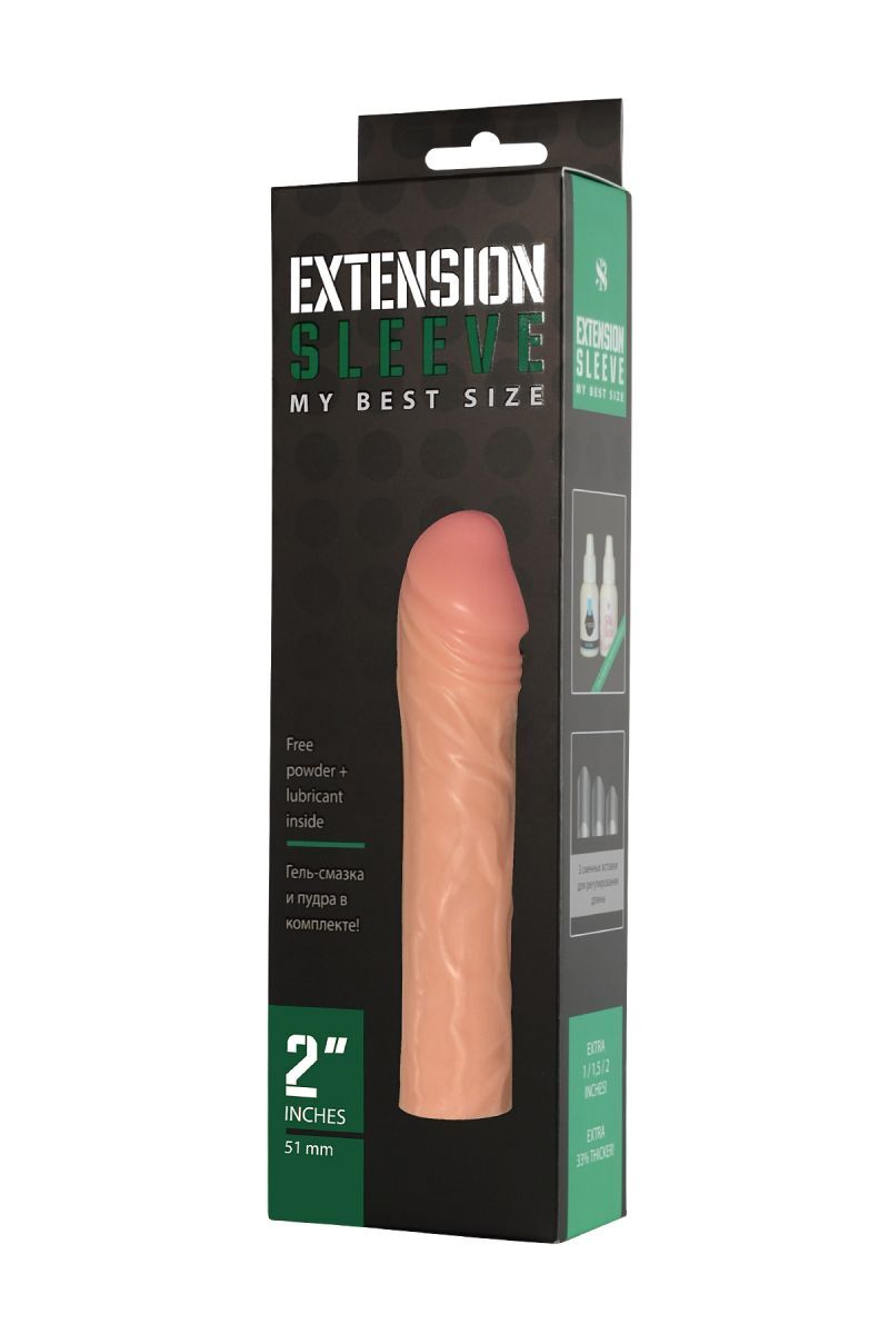 Насадка-удлинитель Extension sleeve классической реалистичной формы с прорисованными плавными венками и выраженной головкой откорректирует пенис до необходимого размера, достаточно лишь выбрать одну из трёх вставок, входящих в набор.