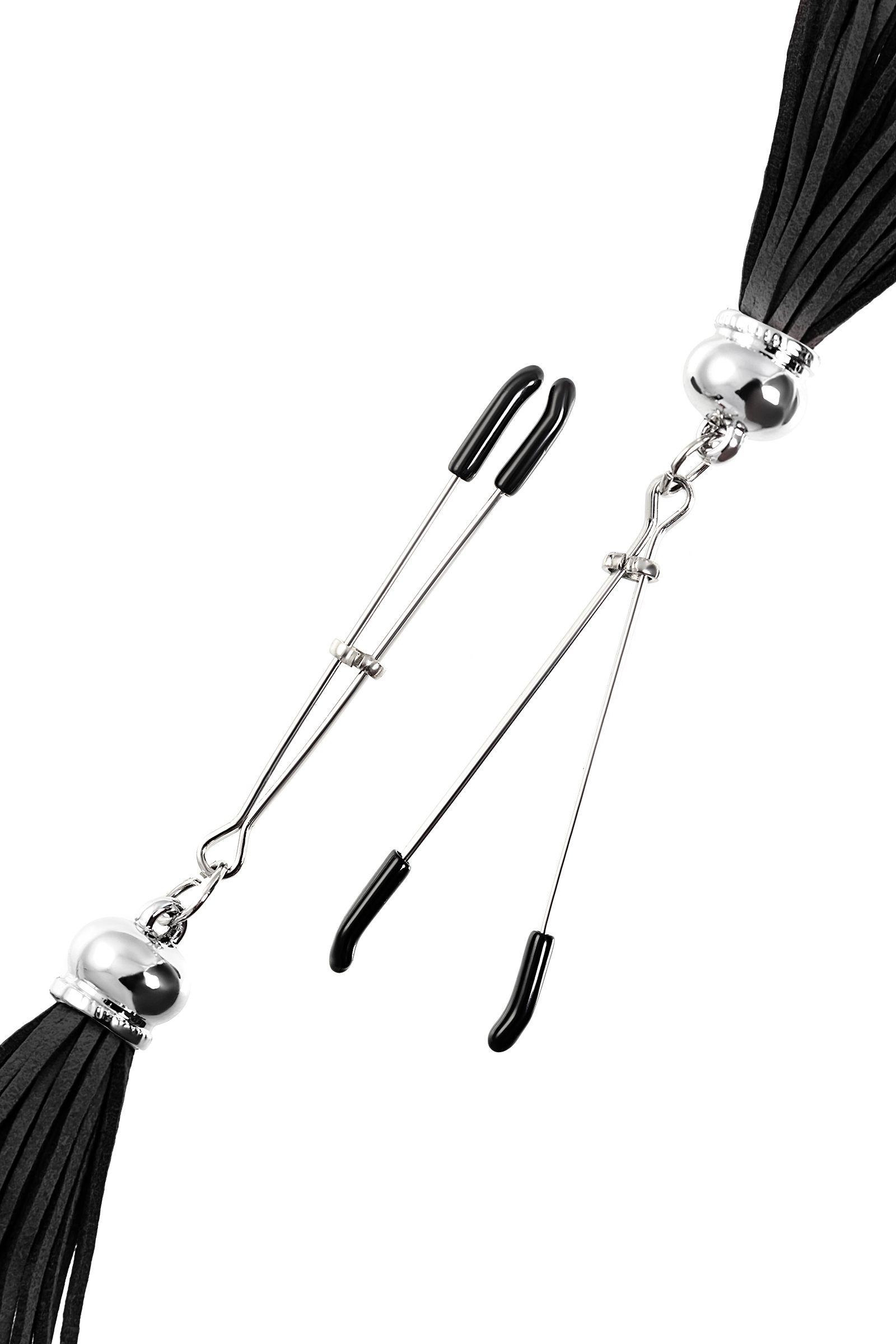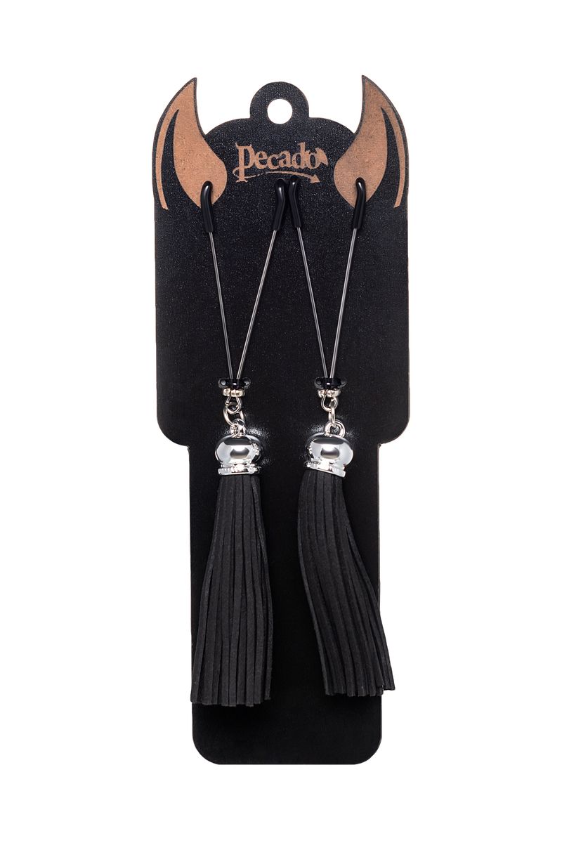 Попробуйте новые, дерзкие ощущения глубокого наслаждения! Зажимы-вилки от Pecado гарантируют смешение ярких чувств от тактильного контакта с нежной кожей сосков. Зажимы выполнены из высококачественных материалов. Металлическая часть компактная, приятная на ощупь. На концах черные резиновые наконечники, для безопасного воздействия на эрогенные зоны. Интенсивность сжатия аксессуара регулируется миниатюрными колечками. В зависимости от личных предпочтений и сценария игры, можно выбрать легкое пощипывание, или сильное сдавливание. Бахрома из натуральной замши, черного цвета, добавляет манящую красоту смелому атрибуту. При каждом соблазнительном покачивании груди, кисточки движутся в пикантном ритме. Также подходит для стимуляции и возбуждении в области половых губ и клитора.