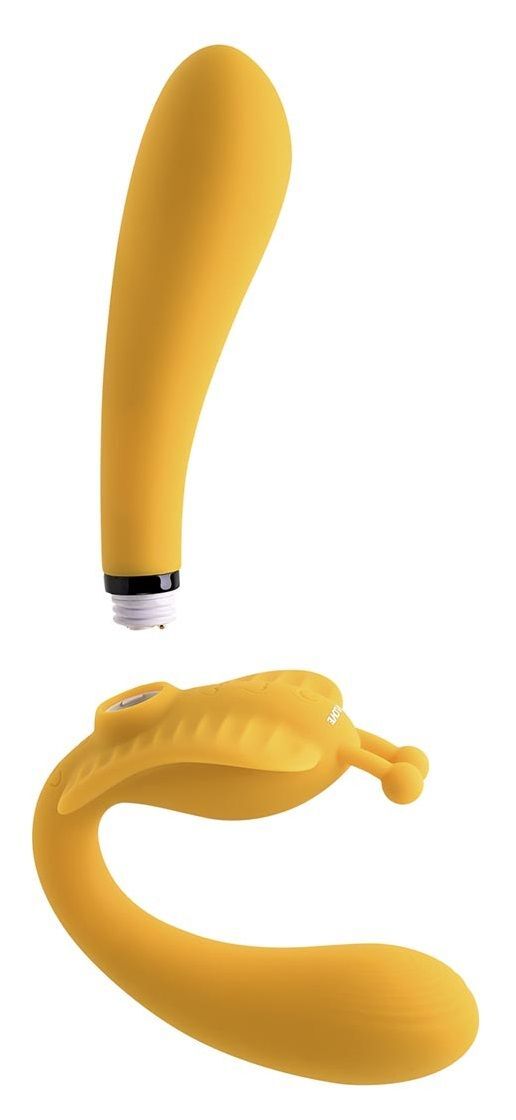 Эта уникальная игрушка имеет 3 мотора с независимым управлением 10 скоростями. Изогнутый выгинальный стимулятор соединяется с помощью гибкого колена со стимулятором в форме бабочки с широкими крыльями и усиками, которые прекрасно воздействуют на клитор.